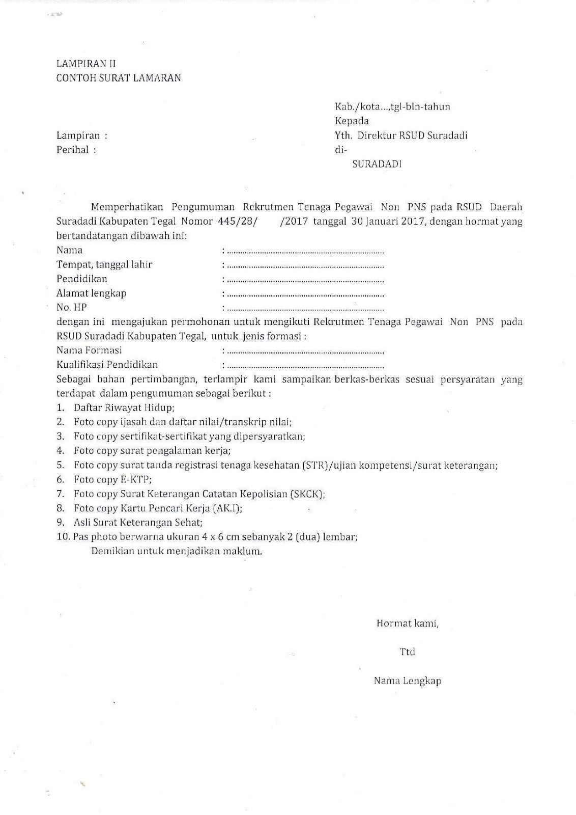 Lamaran pegawai non pns blud kepada.